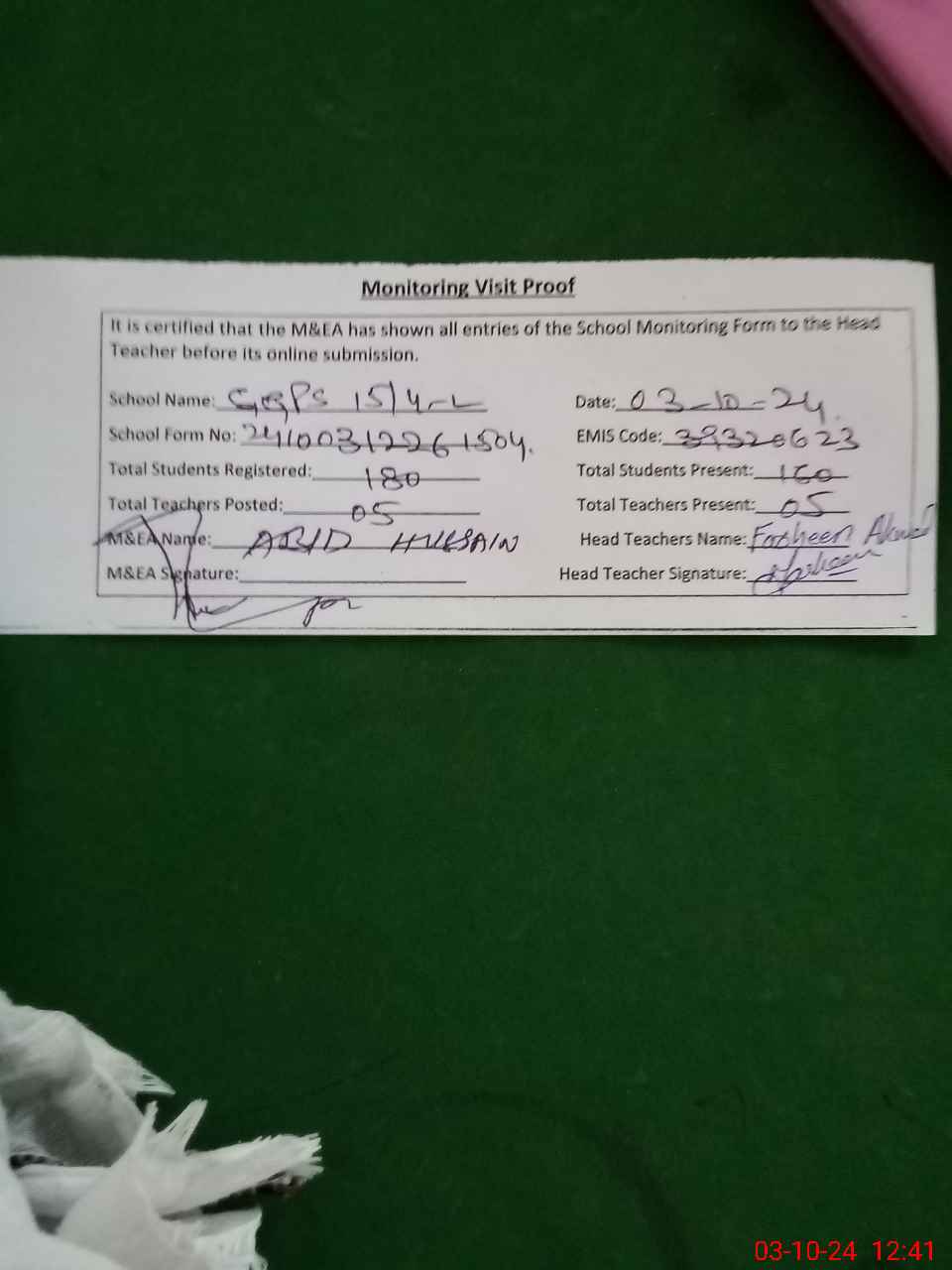 | Certified that this School was Inspected by the Undersigned MEA/DMO Today and the Information Stated Above is as Per Record. | |||||