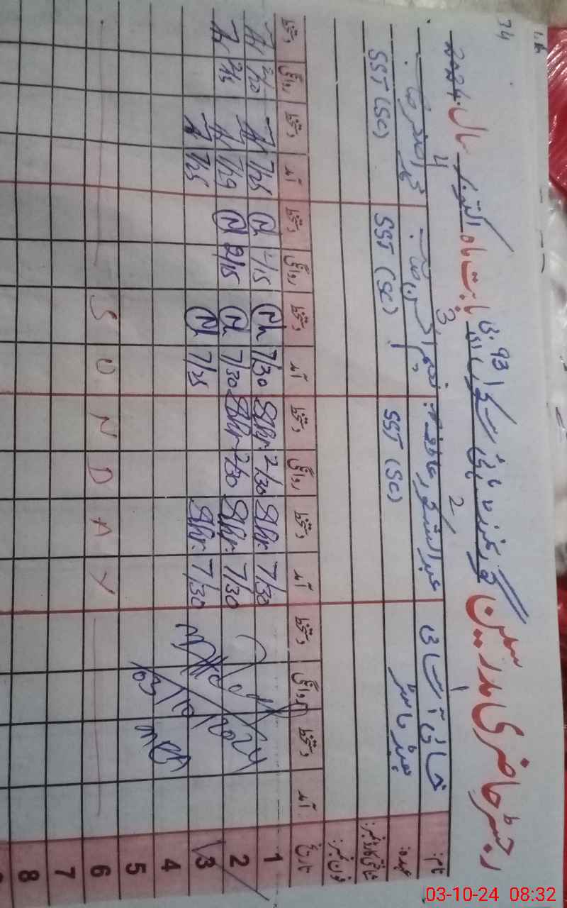 | CNIC | Full Name | Designation | R/C | Absence During Last Calender Month |