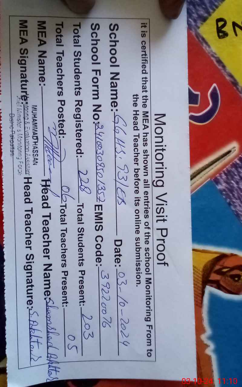 | Certified that this School was Inspected by the Undersigned MEA/DMO Today and the Information Stated Above is as Per Record. | |||||