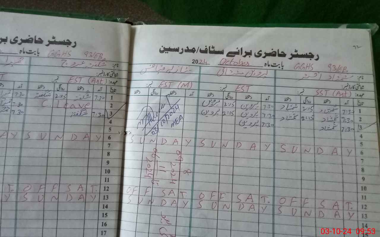 | Name: SH**** AK**** Designation: (School Headmaster's/Headmistress's) S.S.T.(GENERAL) Phone/Cell Number: 03**** |