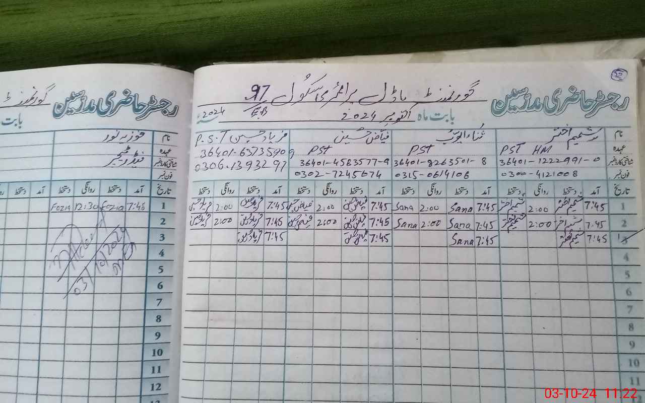 | Name: Sa**** Ay**** Designation: (School Headmaster's/Headmistress's) PST Phone/Cell Number: 03**** |