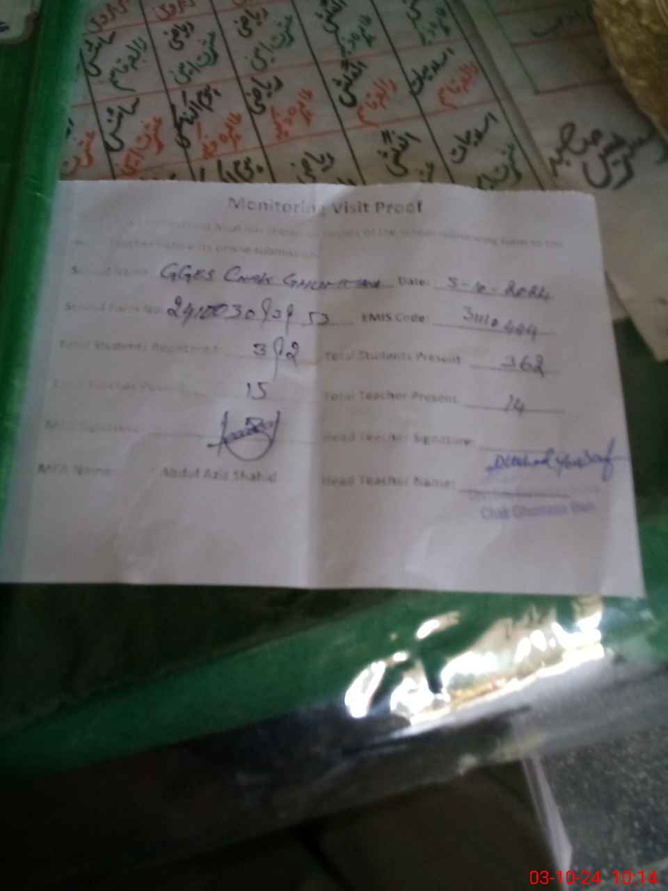 | EMIS Code: 31110444 | Name of School: GGES CHAK GHUMANA | |||
