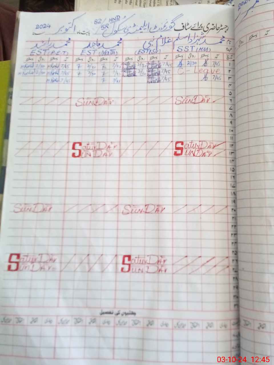 | CNIC | Full Name | Designation | R/C | Absence During Last Calender Month |
