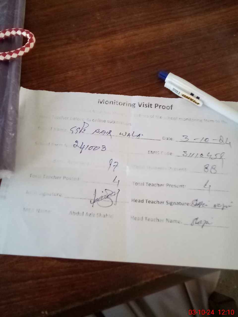 | EMIS Code: 31110459 | Name of School: GGPS BAIR WALA NO.1 | |||