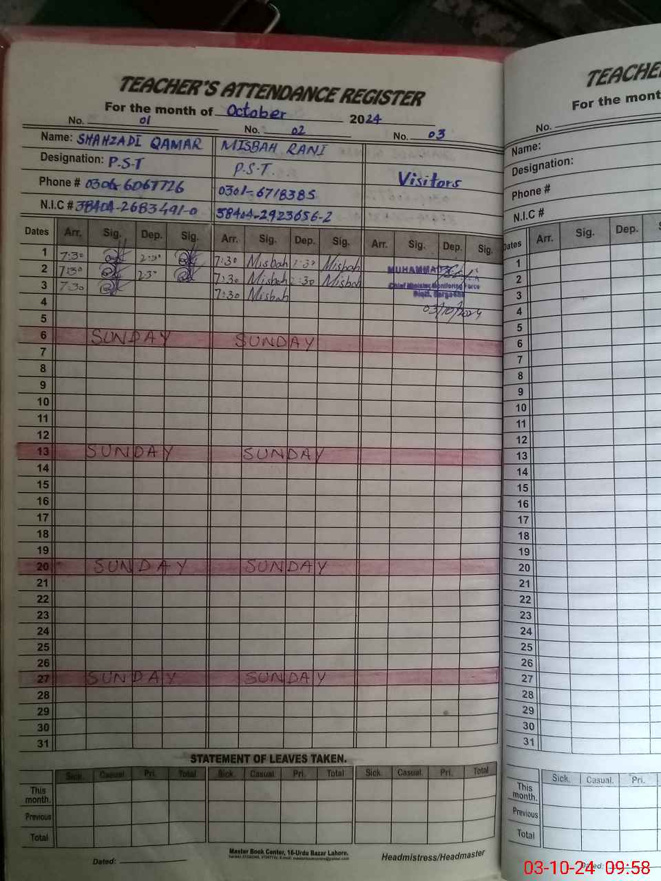 | Name: SH**** QA**** Designation: (School Headmaster's/Headmistress's) PST Phone/Cell Number: 03**** |