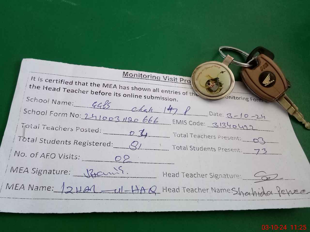 | EMIS Code: 31340422 | Name of School: GGPS 147 P | |||