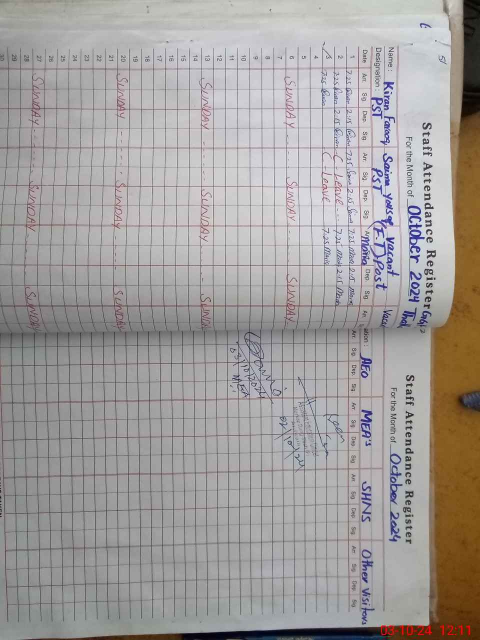 | Name: KI**** SH**** Designation: (School Headmaster's/Headmistress's) PST Phone/Cell Number: 03**** |
