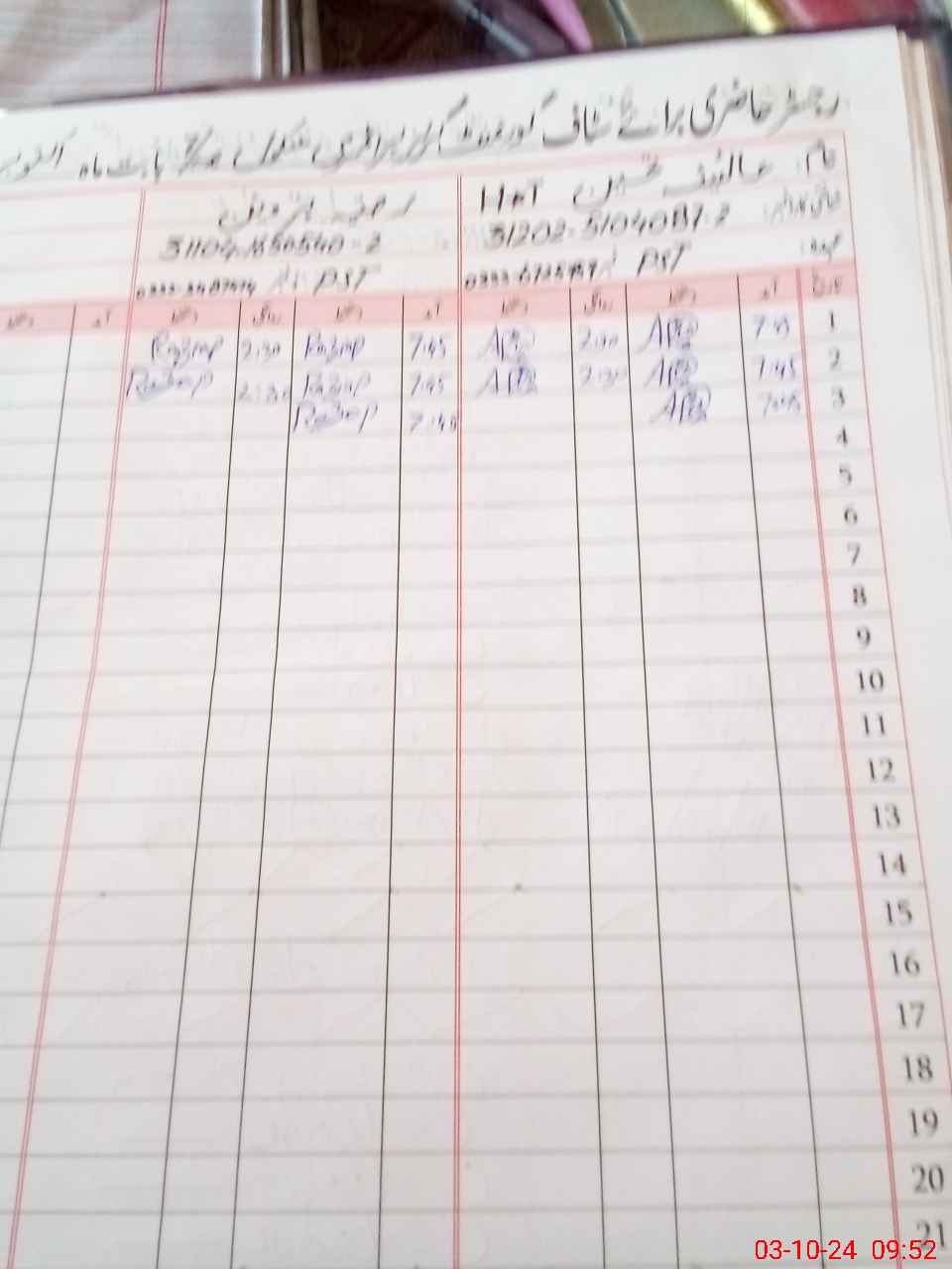 | CNIC | Full Name | Designation | R/C | Absence During Last Calender Month |