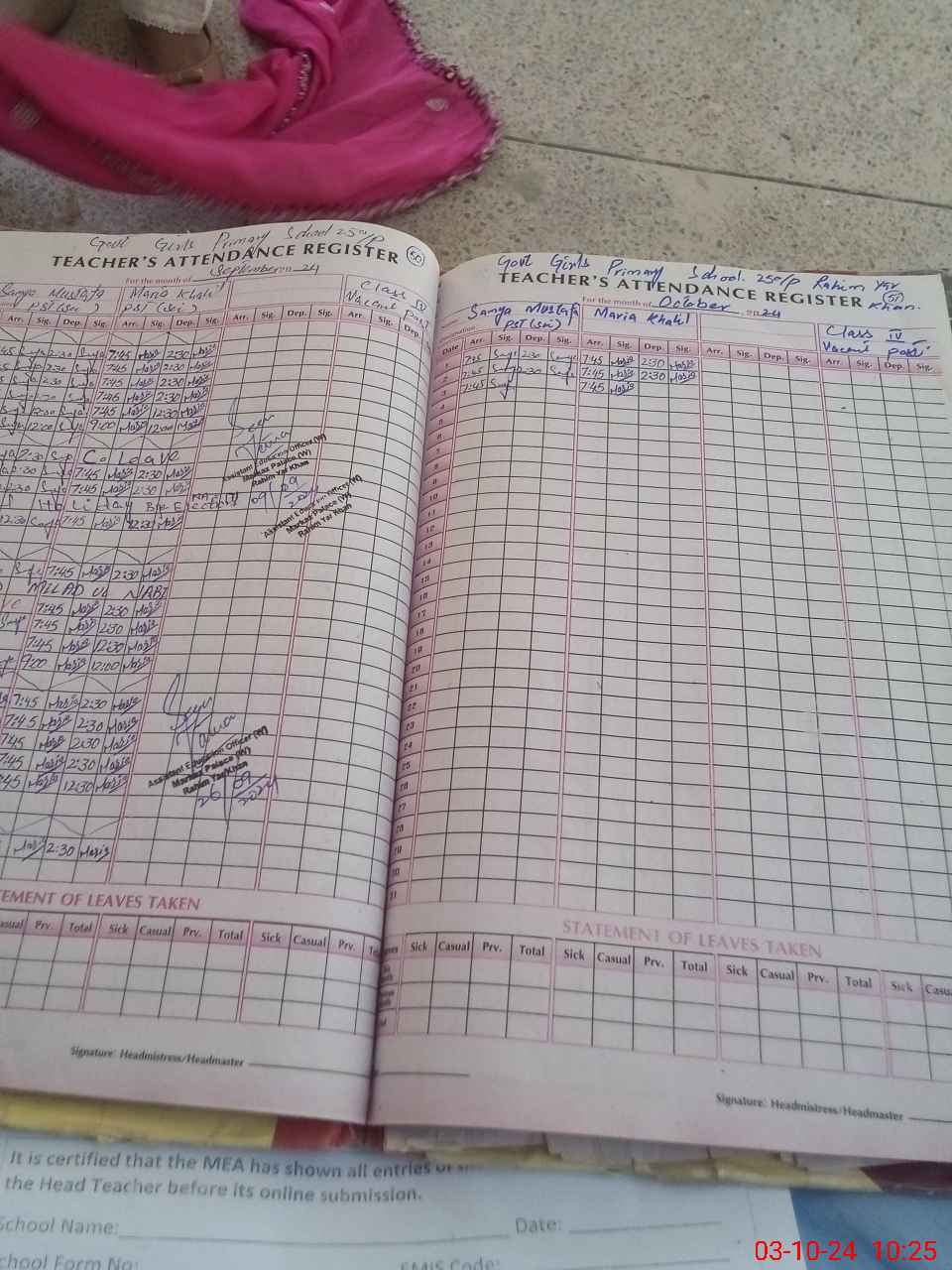 | Attendance Register | Head Teacher | MEA with School | Visit Proof |