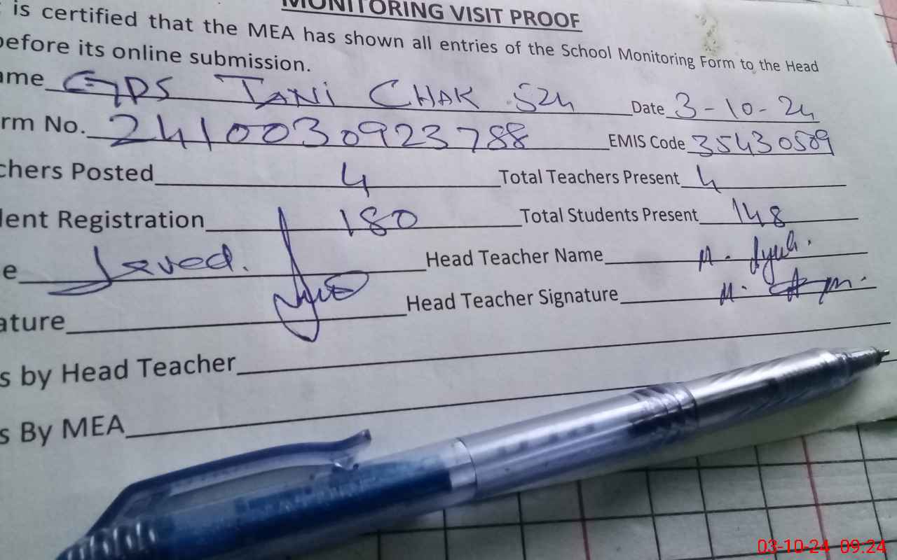 | EMIS Code: 35430509 | Name of School: GPS TANI CHAK 524 | |||