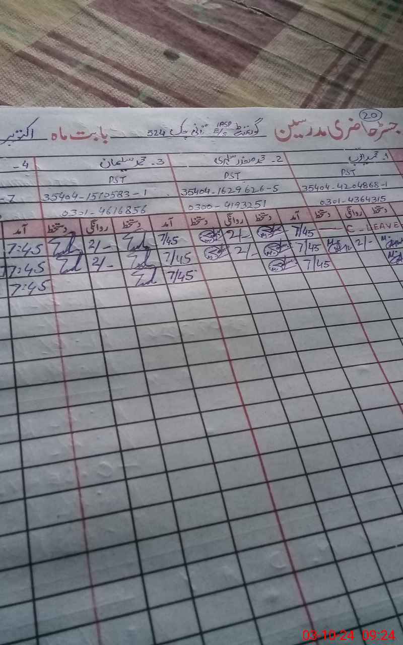 | Name: Sh**** Hu**** Designation: (School Headmaster's/Headmistress's) PST Phone/Cell Number: 03**** |