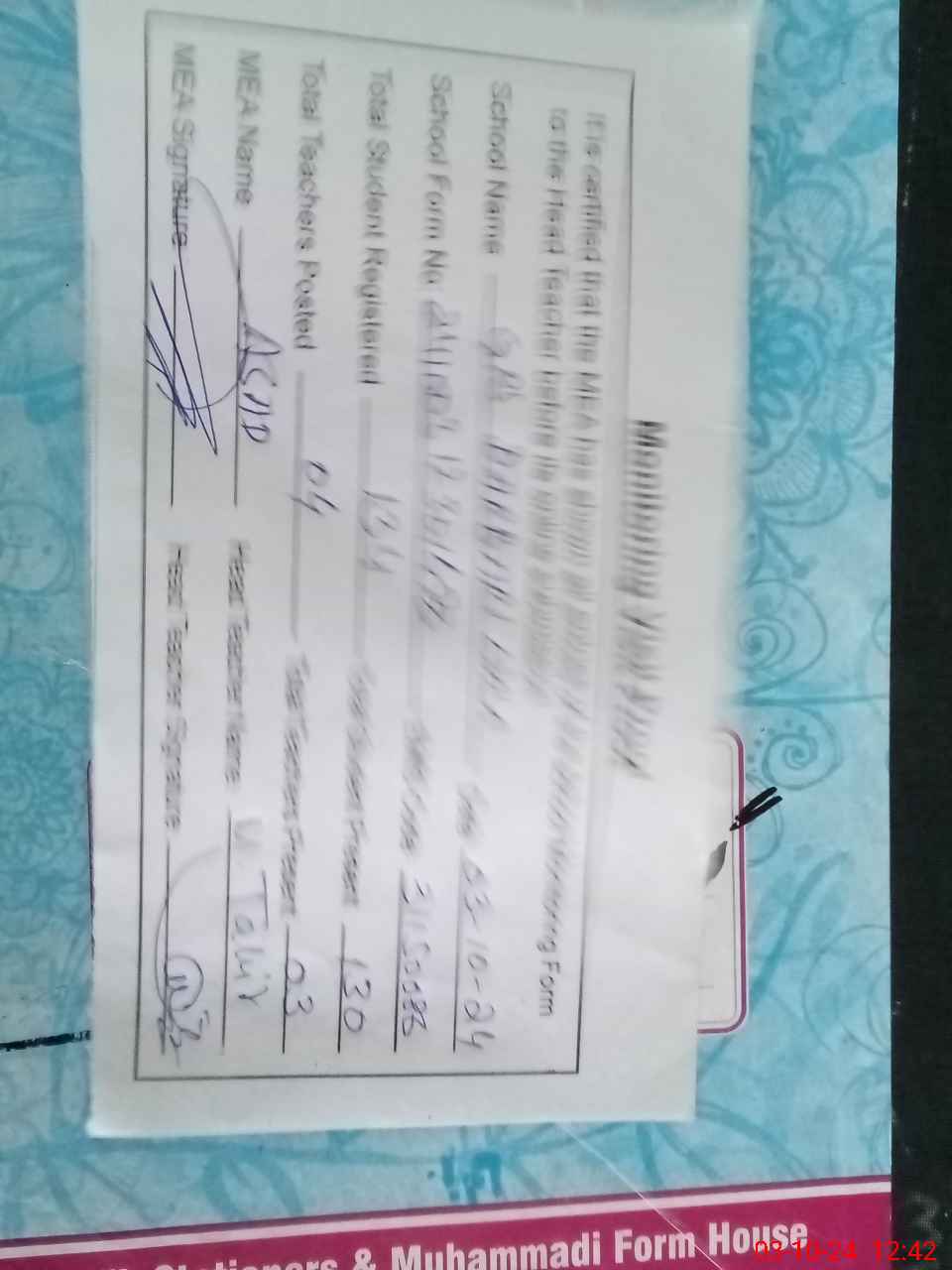 | Name: MTa**** Designation: (School Headmaster's/Headmistress's) Ese Sci Phone/Cell Number: 03**** |