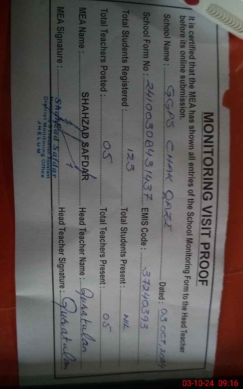 | EMIS Code: 37240393 | Name of School: GGPS CHAK QAZI | |||