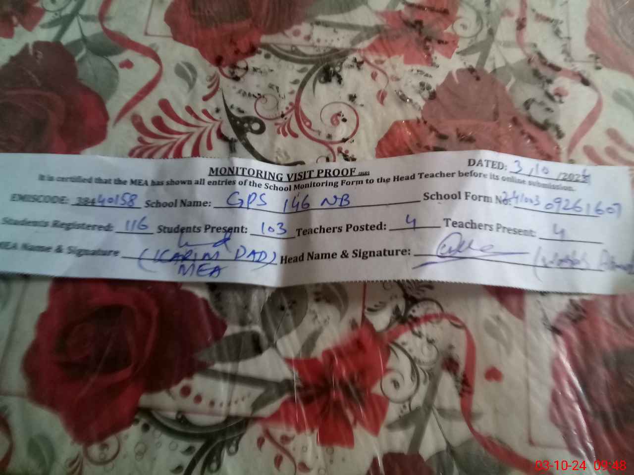 | EMIS Code: 38440158 | Name of School: GPS CHAK NO.146 NB | |||