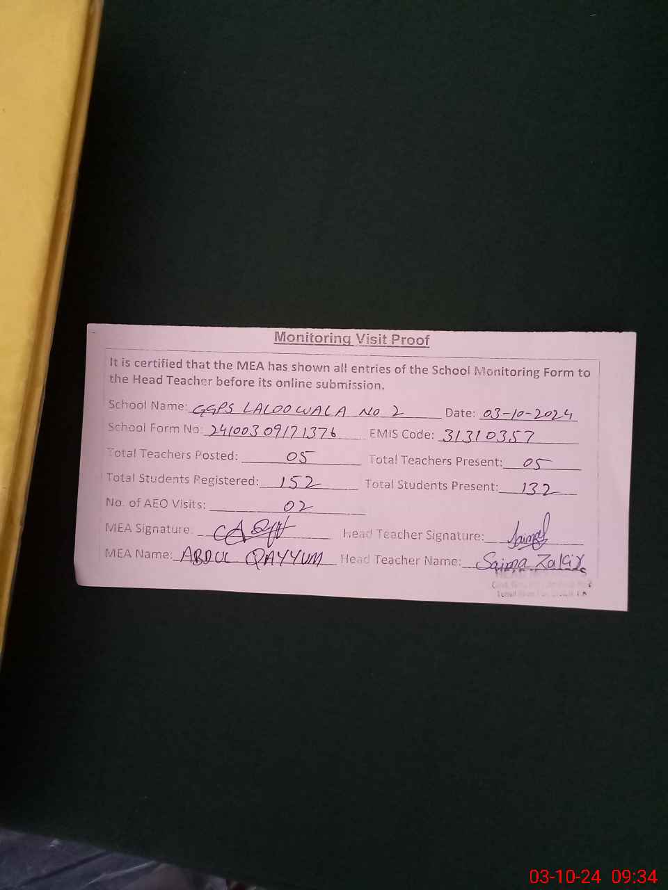 | EMIS Code: 31310357 | Name of School: GGPS LALOO WALA NO. 2 | |||
