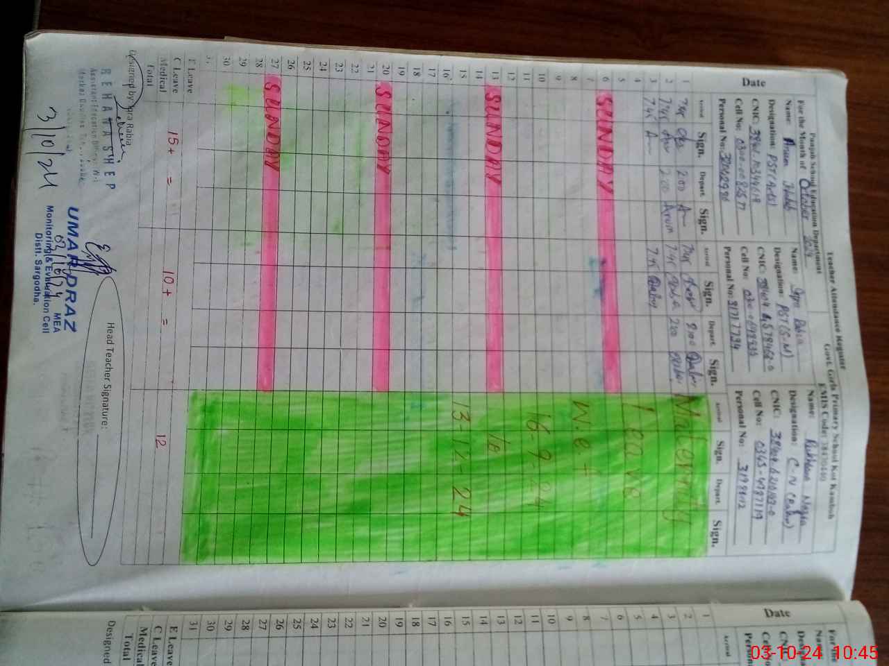 | Name: AN**** HA**** Designation: (School Headmaster's/Headmistress's) PST Phone/Cell Number: 03**** |