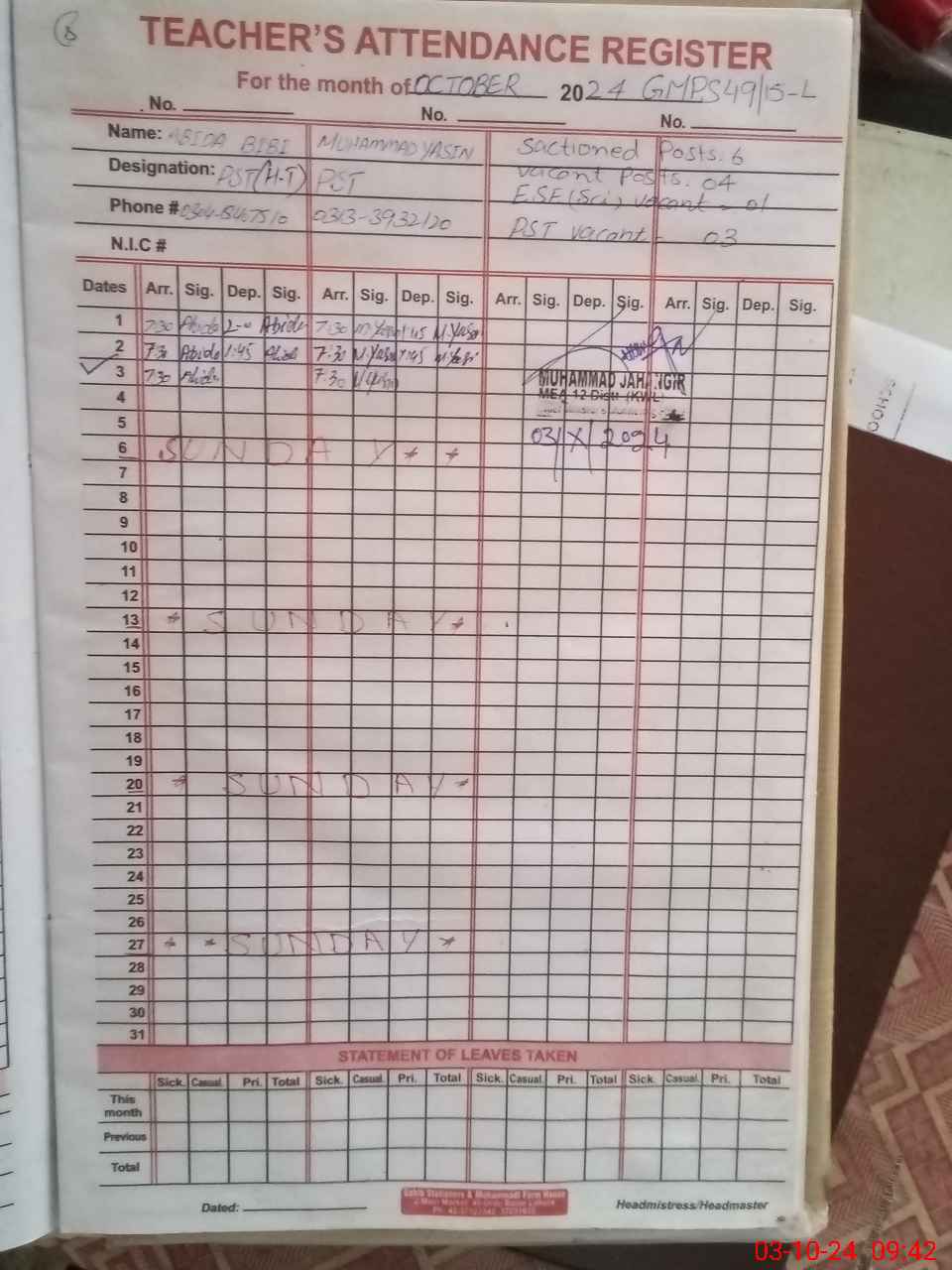 | Name: Ab**** Bi**** Designation: (School Headmaster's/Headmistress's) ESE (Arts) Phone/Cell Number: 03**** |