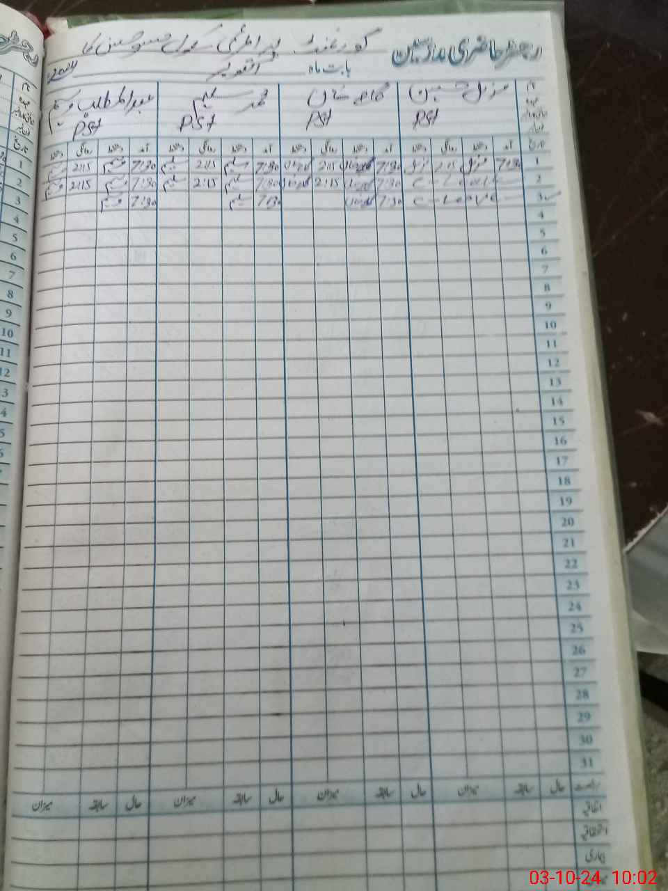 | CNIC | Full Name | Designation | R/C | Absence During Last Calender Month |