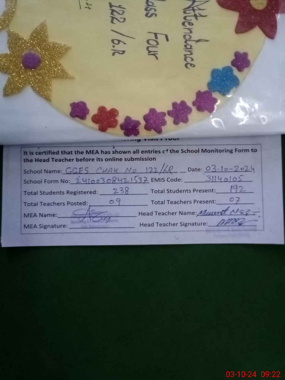 | EMIS Code: 31140105 | Name of School: GGES CHAK 122/6-R | |||