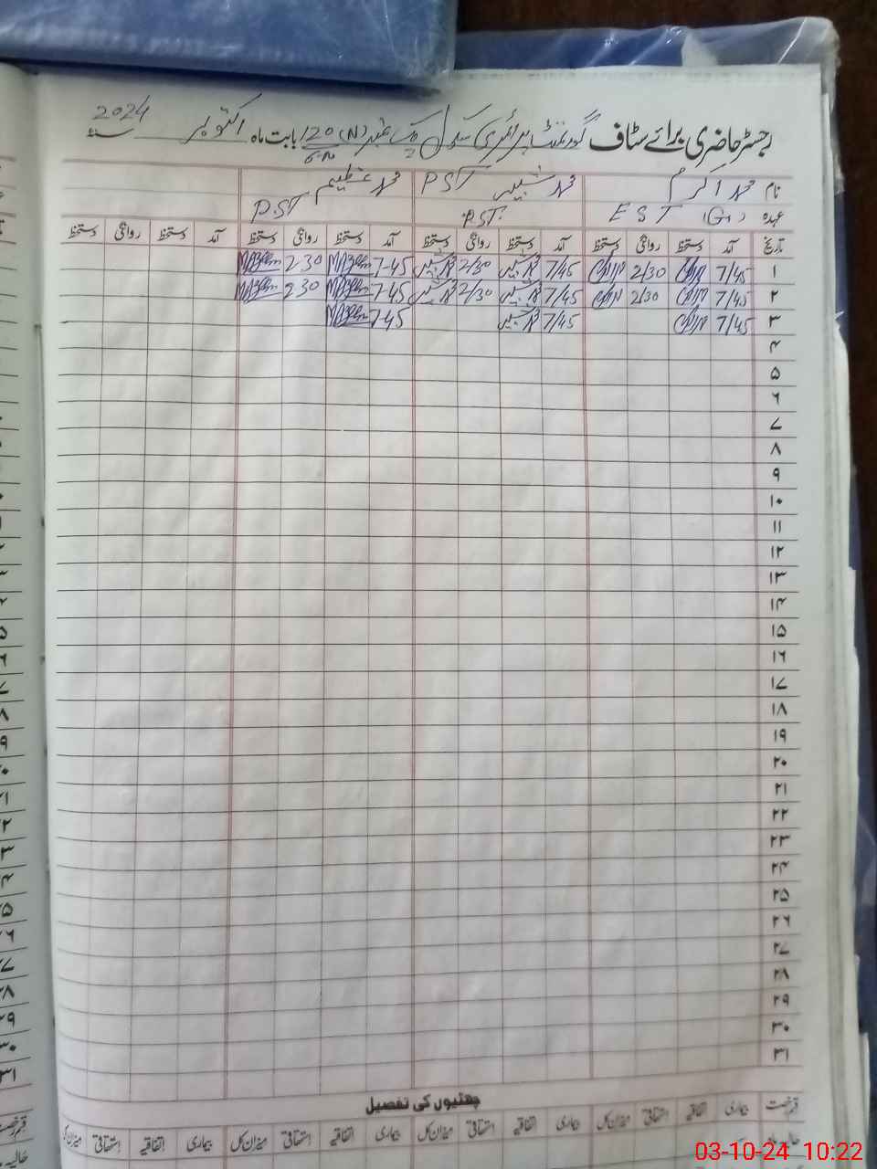 | CNIC | Full Name | Designation | R/C | Absence During Last Calender Month |