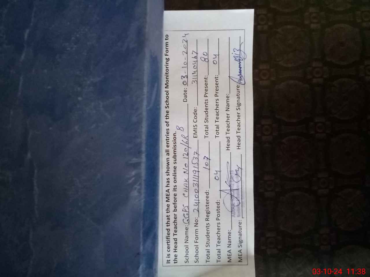 | EMIS Code: 31140467 | Name of School: GGPS CHAK NO 120/6-R B | |||