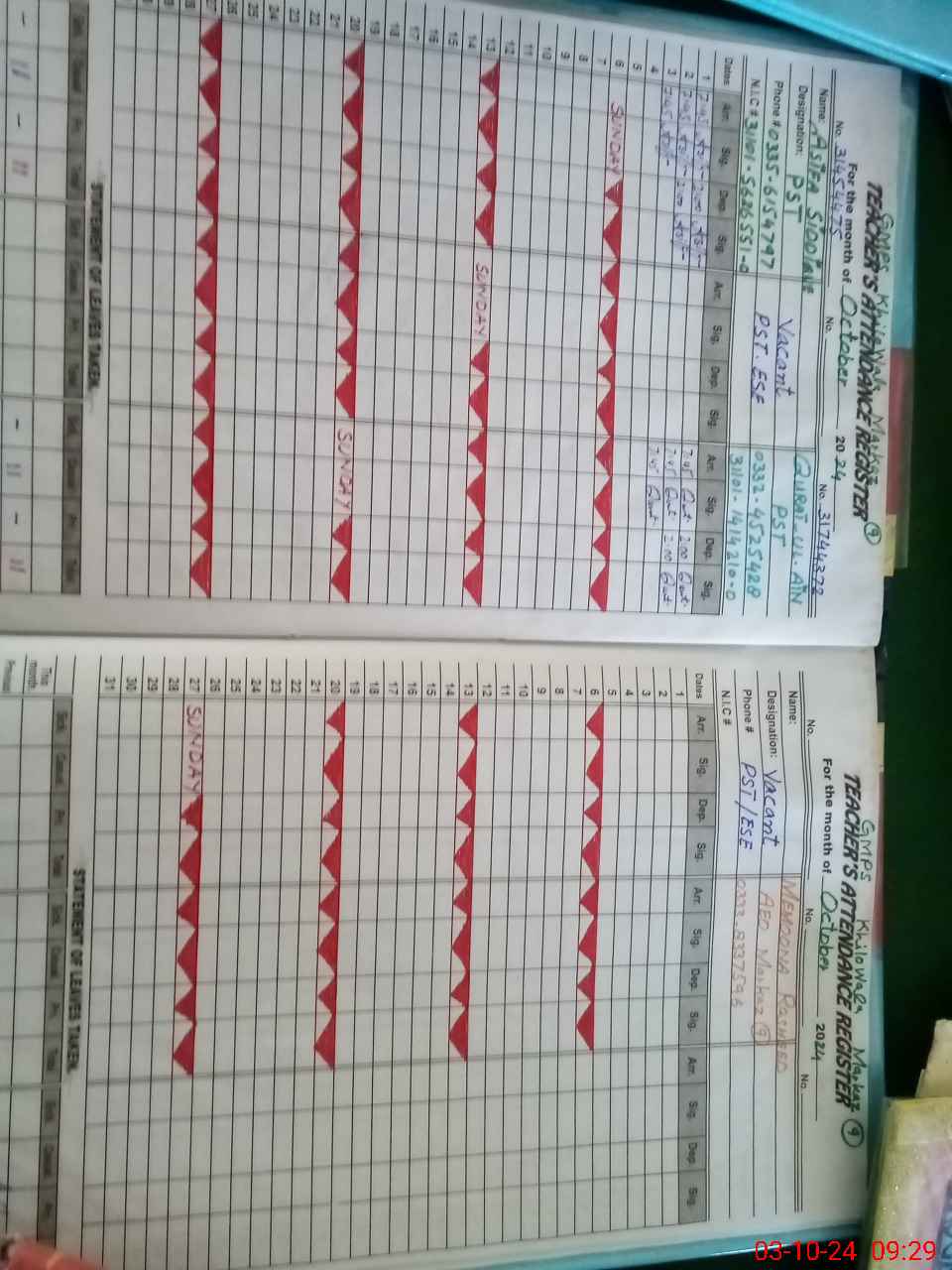 | Name: AS**** SI**** Designation: (School Headmaster's/Headmistress's) PST Phone/Cell Number: 03**** |