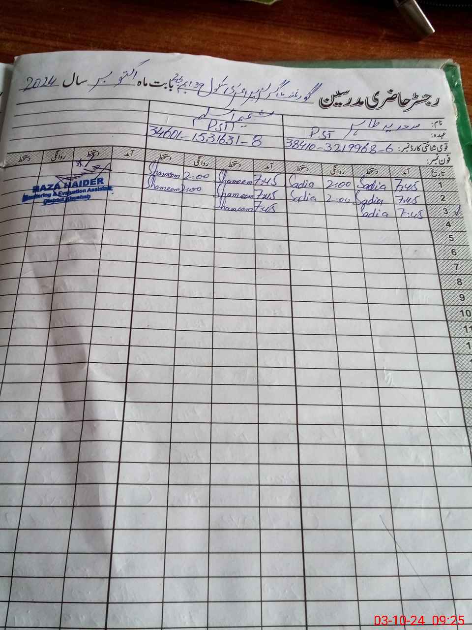 | Name: Sa**** Ta**** Designation: (School Headmaster's/Headmistress's) PST Phone/Cell Number: 03**** |
