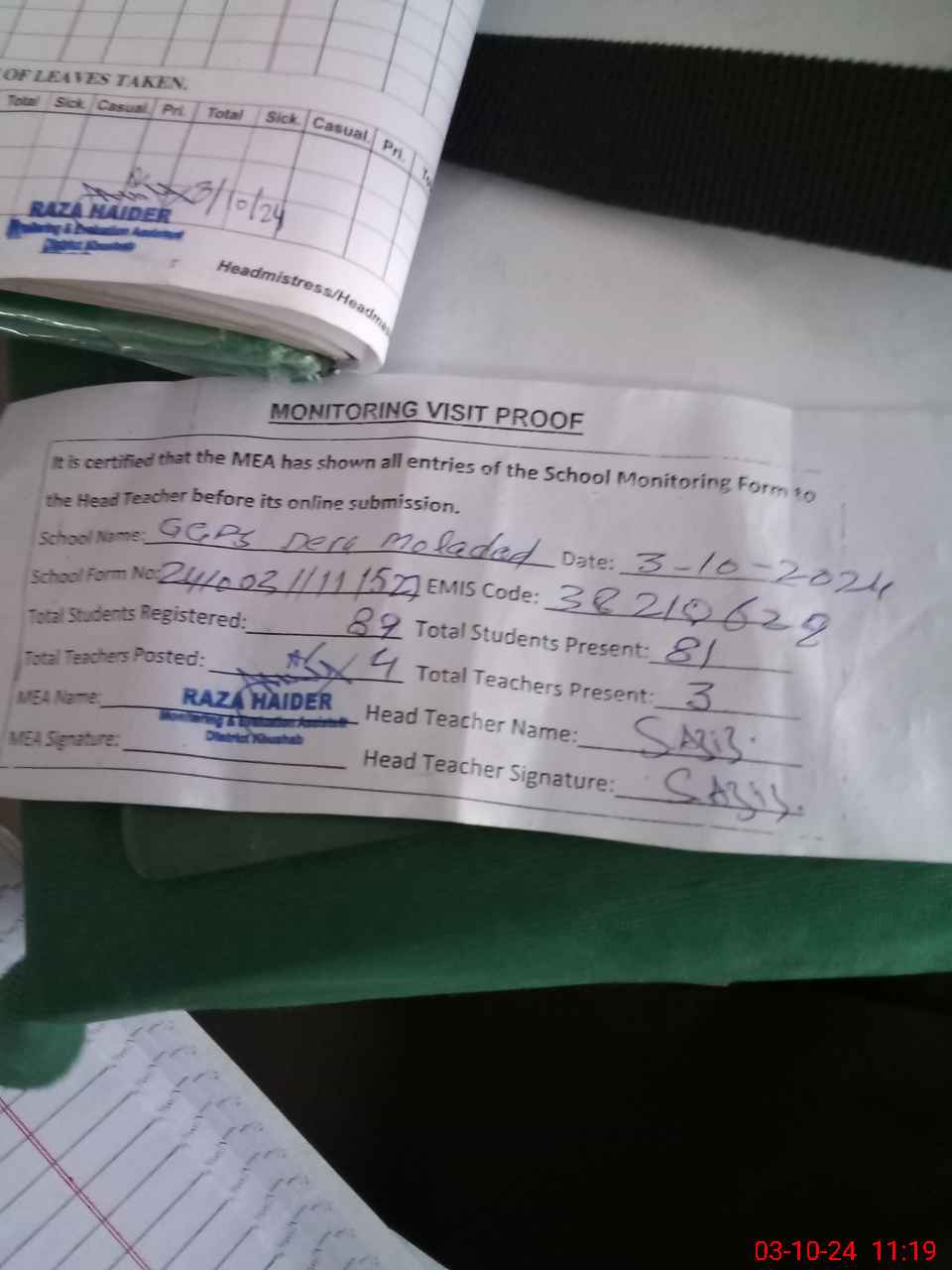 | EMIS Code: 38210628 | Name of School: GGPS DERA MOLADAD | |||