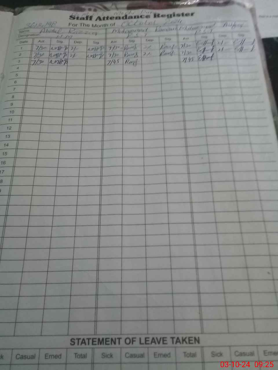 | 36**** | Ma**** Is**** | 1 | 1 | 0 | 0 | 0 | 0 | 0 | 0 | 0 | 0 | 0 | Absent (Un-Authorized) |