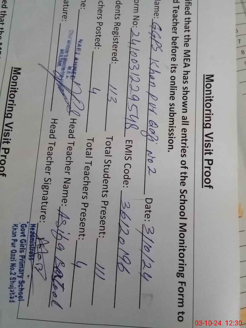 | EMIS Code: 36120196 | Name of School: GGPS KHAN PUR QAZI NO.2 SHUJABAD | |||