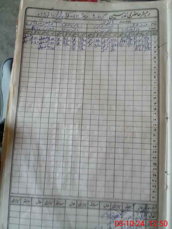 | CNIC | Full Name | Designation | R/C | Absence During Last Calender Month |