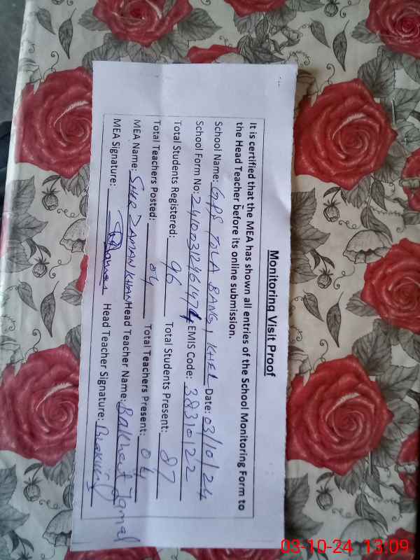 | EMIS Code: 38310122 | Name of School: GPS TOLA BANGE KHEL | |||