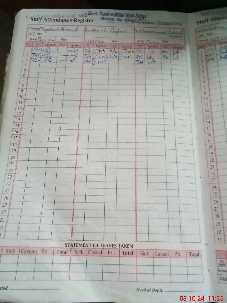| EMIS Code: 31330004 | Name of School: GHS TAMIR-E-MILLAT AMANAT ALI COLONY RYK | |||
