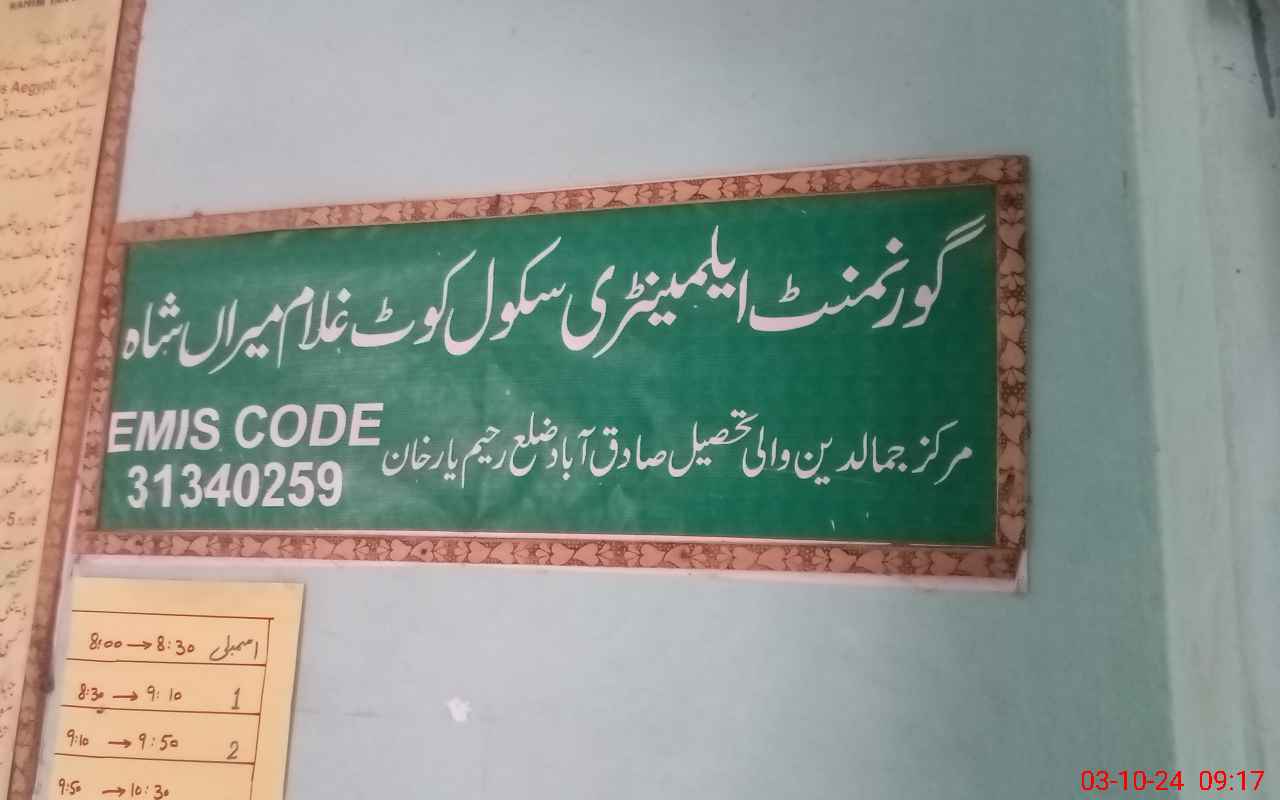 | EMIS Code: 31340259 | Name of School: GES KOT GHULAM MIRAN SHAH | |||