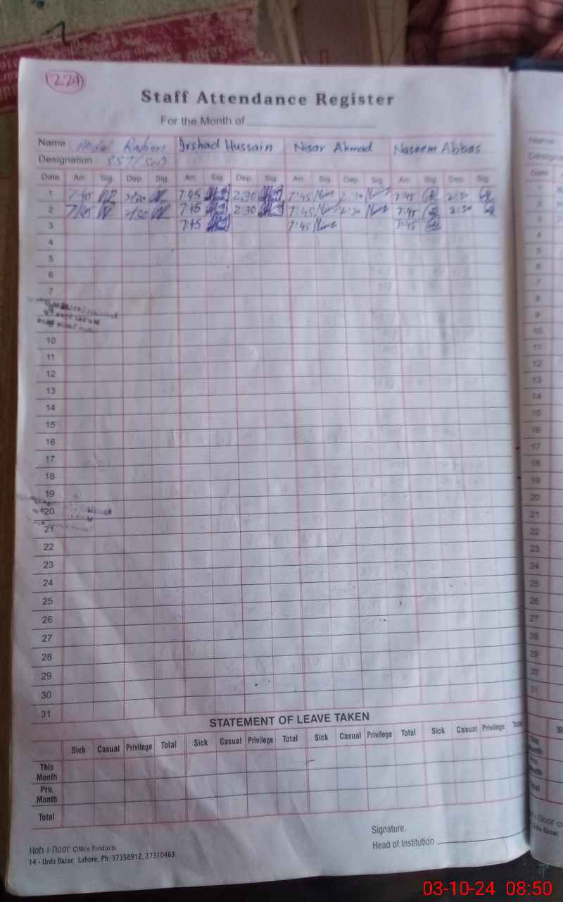 | 31**** | Ab**** Ra**** | SST | Regular | 0 | 0 | 0 | 0 | 0 | 0 | 0 | 0 | 0 | Absent (Un-Authorized) |