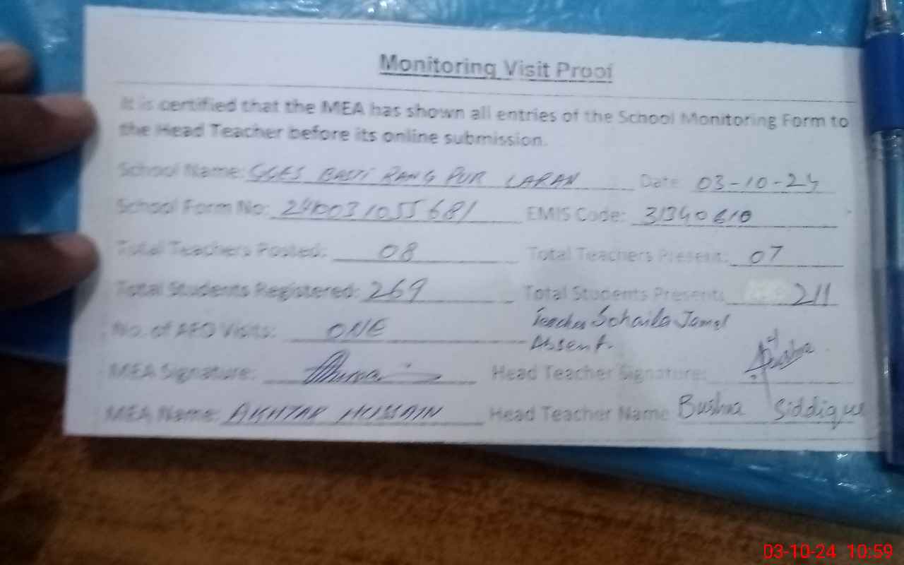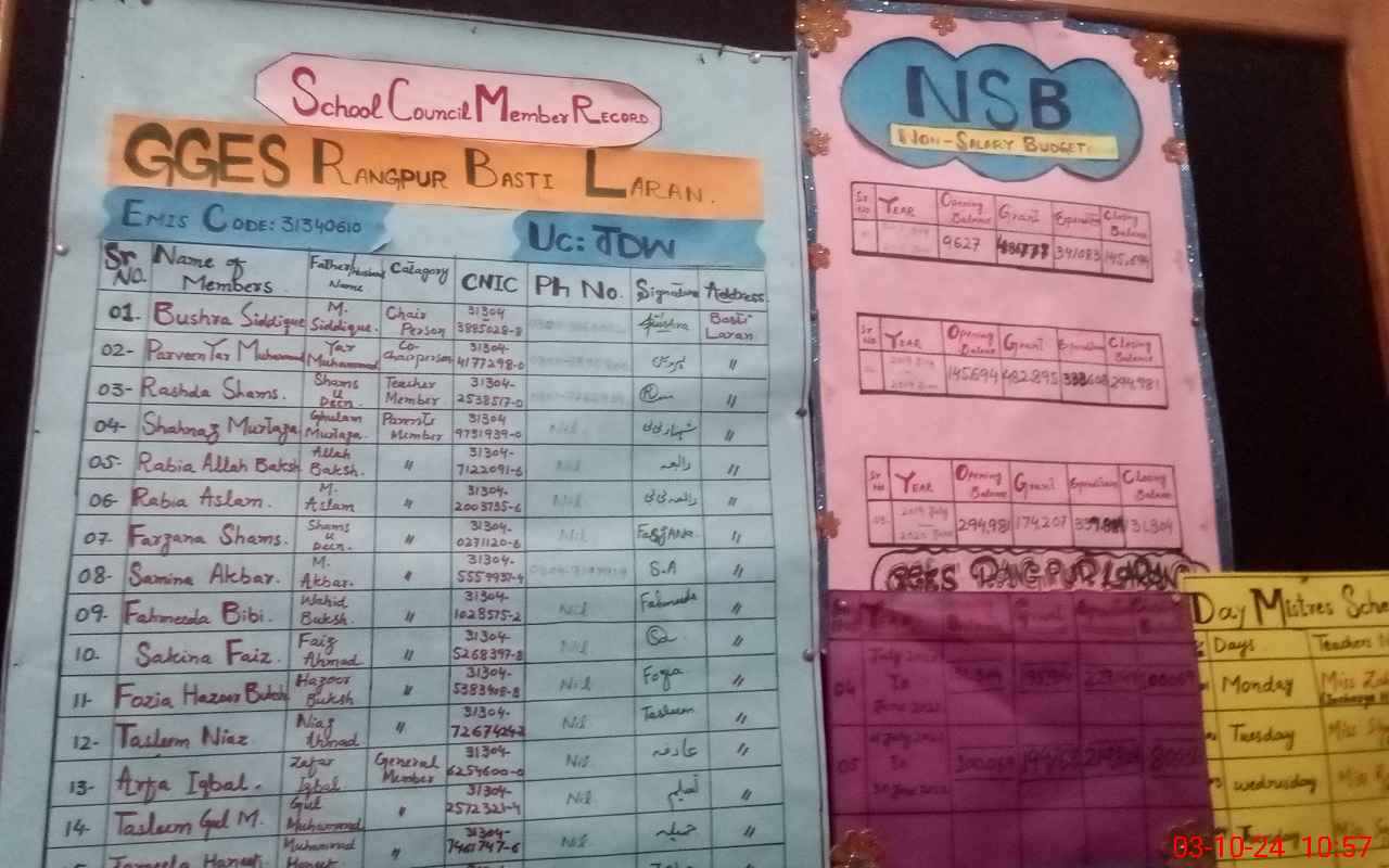 | EMIS Code: 31340610 | Name of School: GGES BASTI RANG PUR LARAN | |||