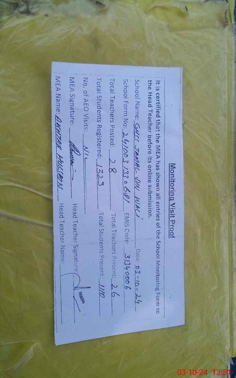 | EMIS Code: 31340006 | Name of School: GHSS JAMAL DIN WALI | |||