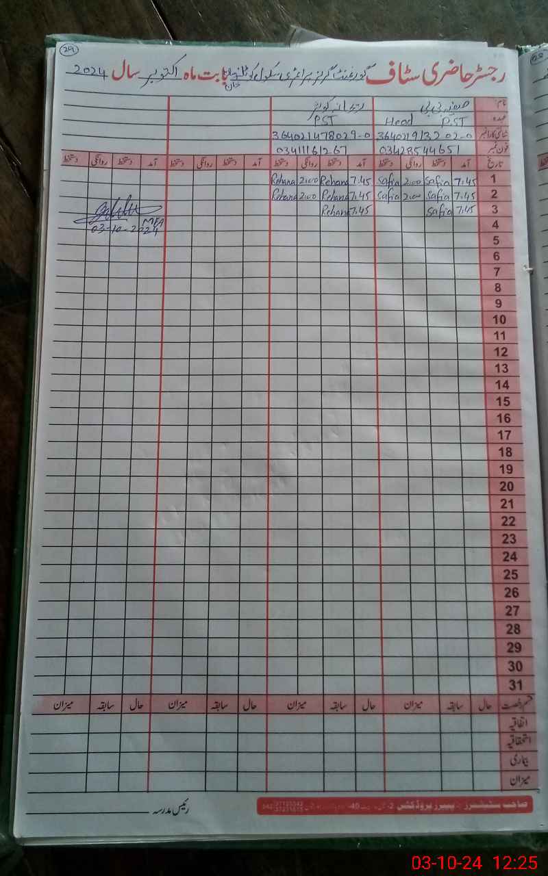 | Name: Sa**** Bi**** Designation: (School Headmaster's/Headmistress's) PST Phone/Cell Number: 03**** |