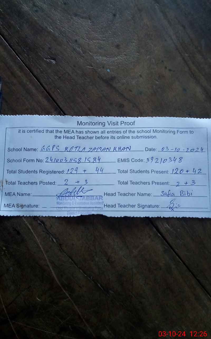 | EMIS Code: 39210348 | Name of School: GGPS KOTLA ZAMAN KHAN | |||
