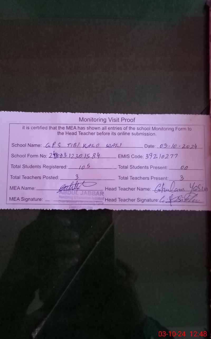 | EMIS Code: 39210277 | Name of School: GPS TIBI KALO WALI | |||