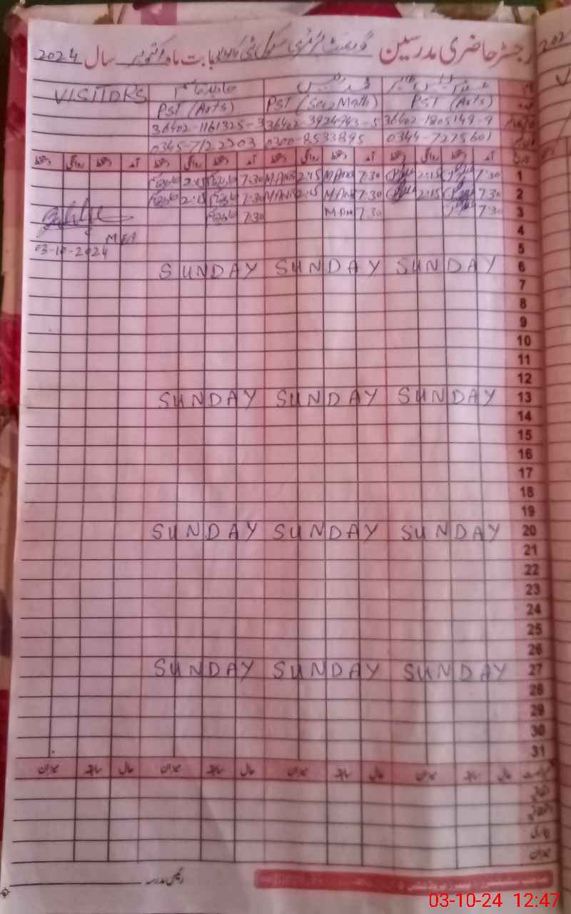 | Name: MAn**** Designation: (School Headmaster's/Headmistress's) PST Phone/Cell Number: 03**** |