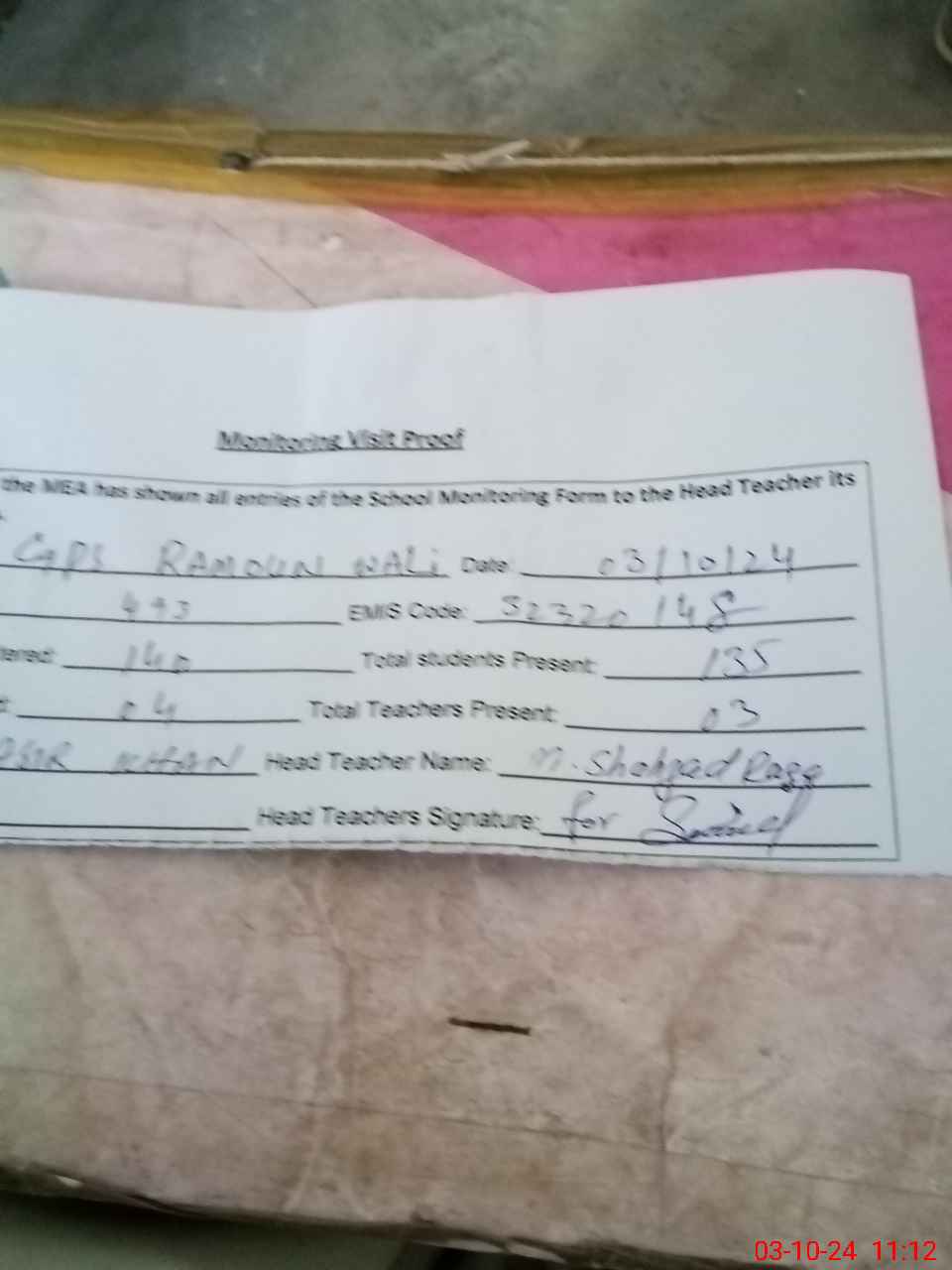 | EMIS Code: 32320148 | Name of School: GPS RAHMOON WALI | |||