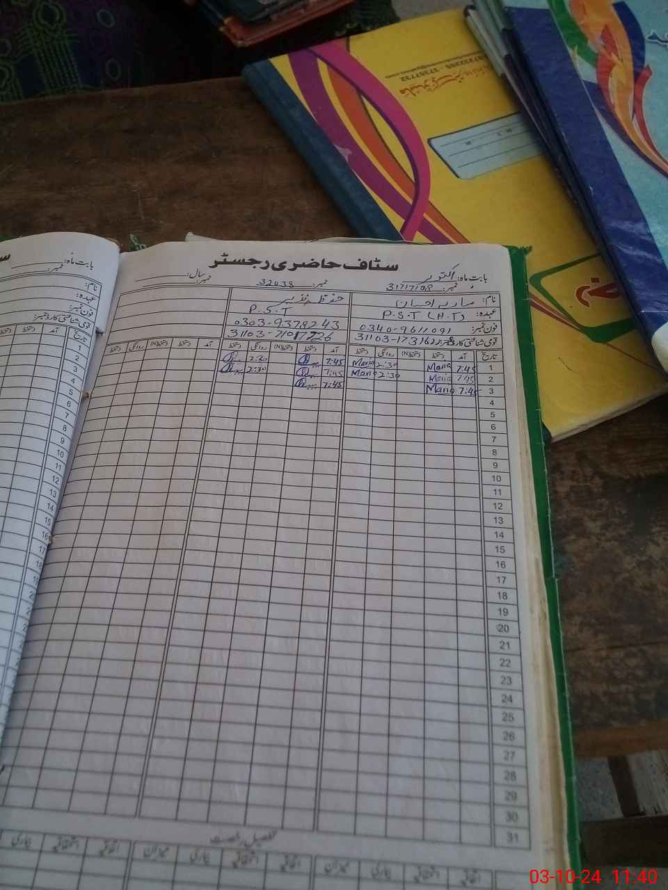 | CNIC | Full Name | Designation | R/C | Absence During Last Calender Month |