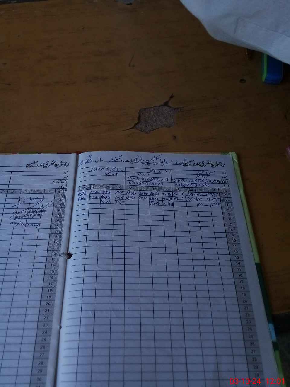 | Name: Mu**** Ah**** Designation: (School Headmaster's/Headmistress's) PTC Phone/Cell Number: 03**** |