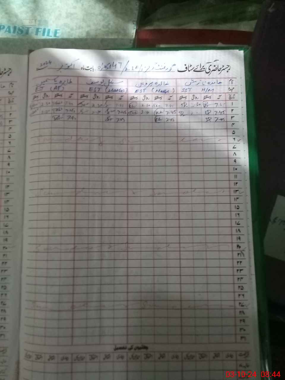| CNIC | Full Name | Designation | R/C | Absence During Last Calender Month |