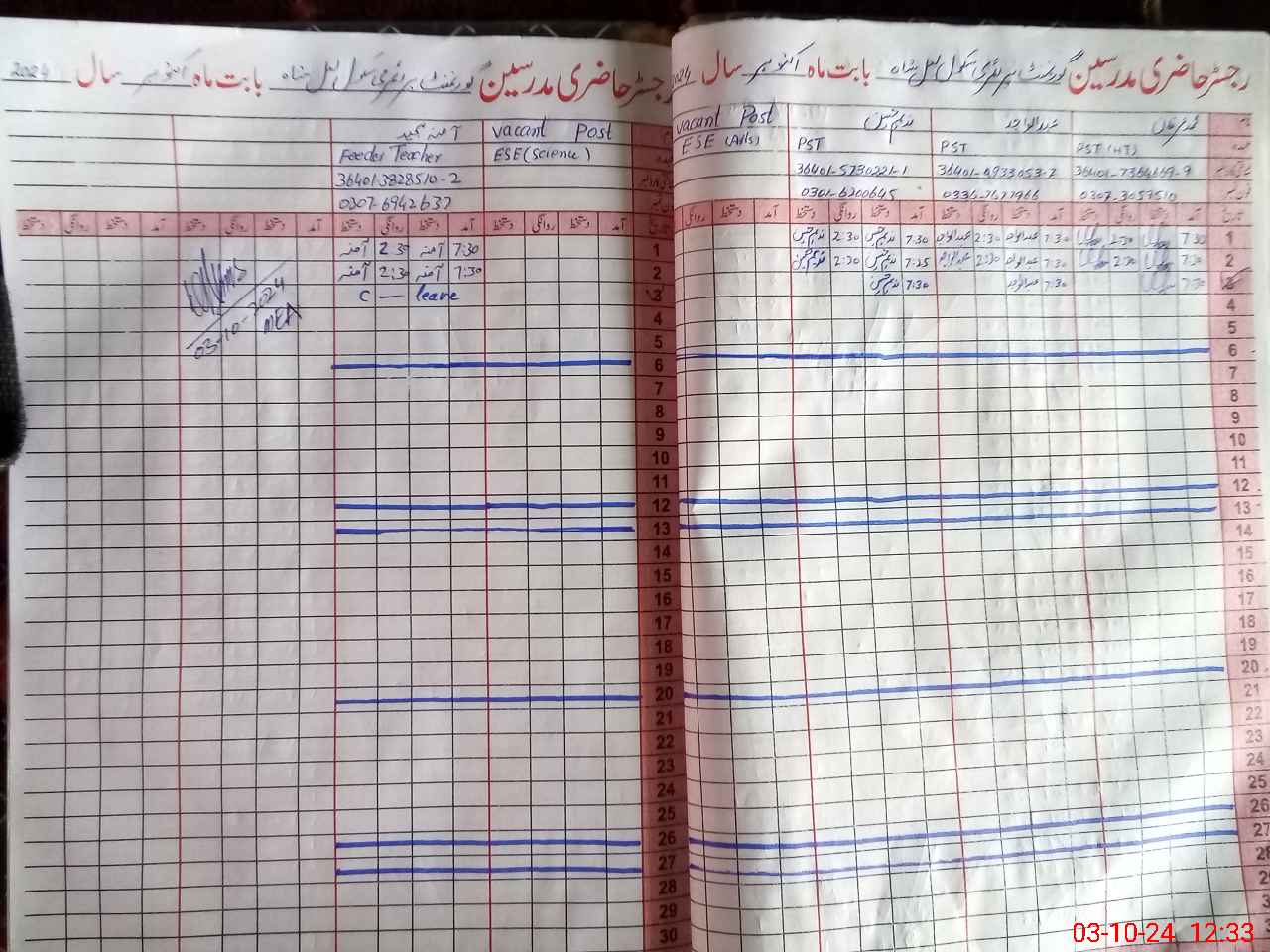 | Name: Mo**** Ir**** Designation: (School Headmaster's/Headmistress's) PST Phone/Cell Number: 03**** |