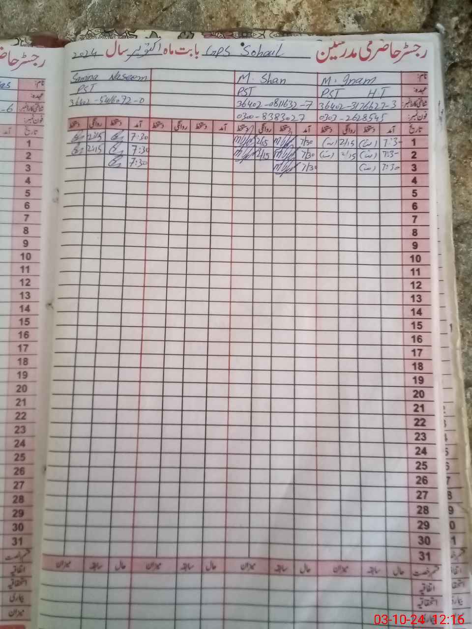 | Name: MU**** IN**** Designation: (School Headmaster's/Headmistress's) PST Phone/Cell Number: 03**** |