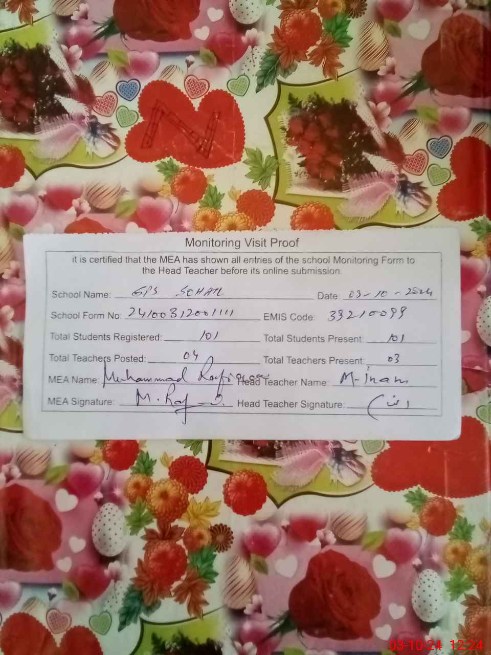 | EMIS Code: 39210099 | Name of School: GPS SOHAIL P/O 27/SP | |||