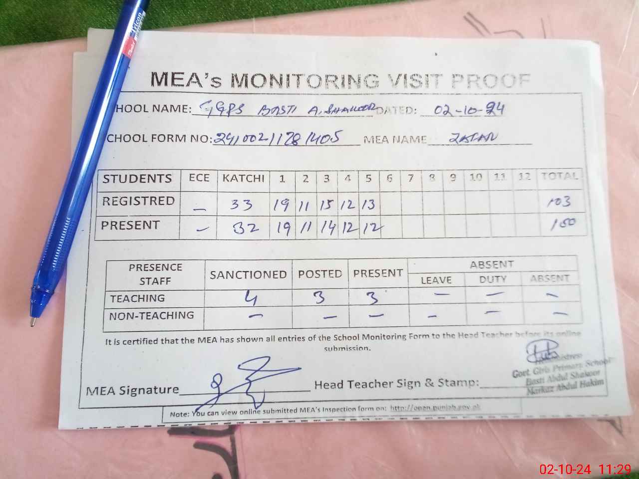 | EMIS Code: 36410469 | Name of School: GGPS BASTI ABDUL SHAKOOR WALI, ABDUL HAKIM | |||