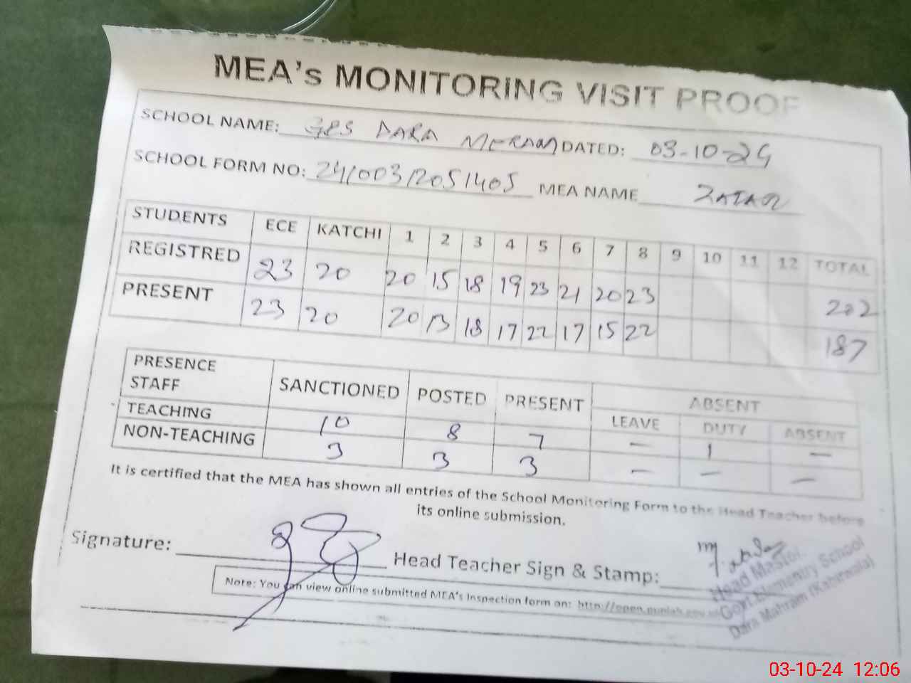 | EMIS Code: 36410074 | Name of School: GES DARA MEHRAM DARA, ABDUL HAKIM | |||